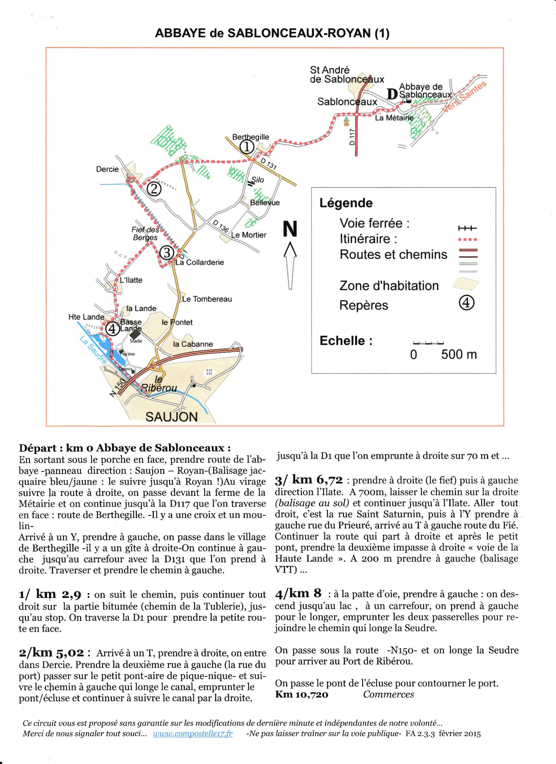 Les pèlerins cyclistes peuvent emprunter ce chemin sans problème. Cependant, avant St-Savinien au niveau de Tribossard, il est préférable de rester sur la route facilement repérable sur notre carte…